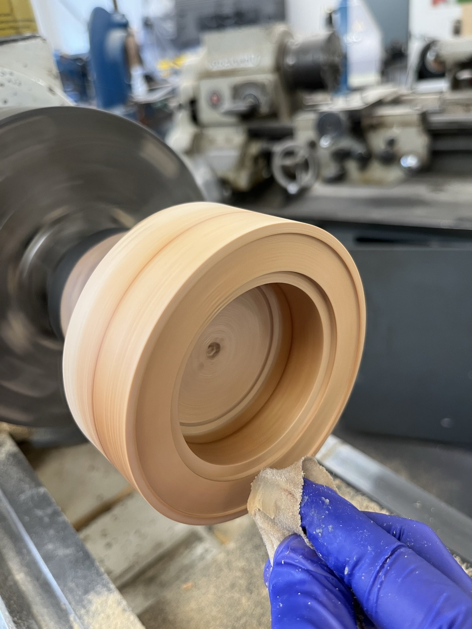 Wood goes on the top surface of the container lid. The more it absorbs the water, the more it bends and creates the space