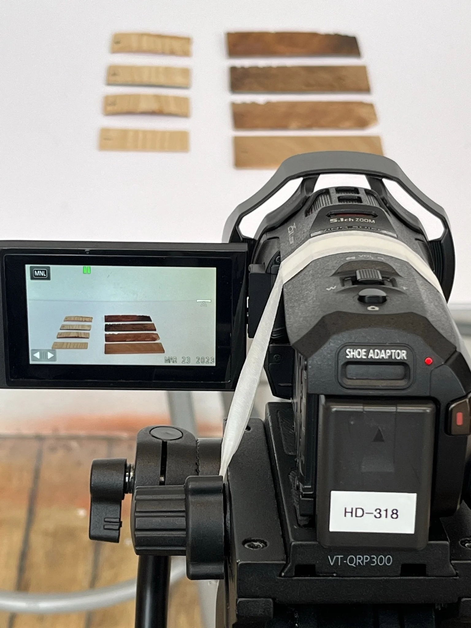 "A phenomenon in which a composite material bends due to a difference in expansion rate with two composite layers due to the moisture absorption expansion and contraction of wood"