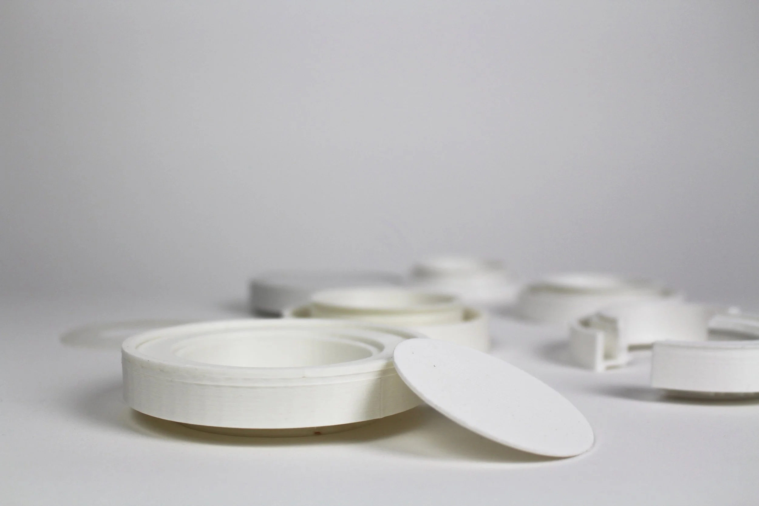 A food container that reacts to condensation due to its level of humidity and allows air ventilation by itself. When the condensation happens, the cuts from the lid naturally bents over and create a negative space so the air can travel. When it is fully ventillated and low humidity, it will naturally flatten out and close the lid and make it tight.
